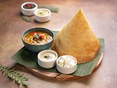 - South Indian Delights: Relish the essence of South India with our selection of dosas, idlis, vadas, sambars and uttapam, each prepared with traditional methods and spices.